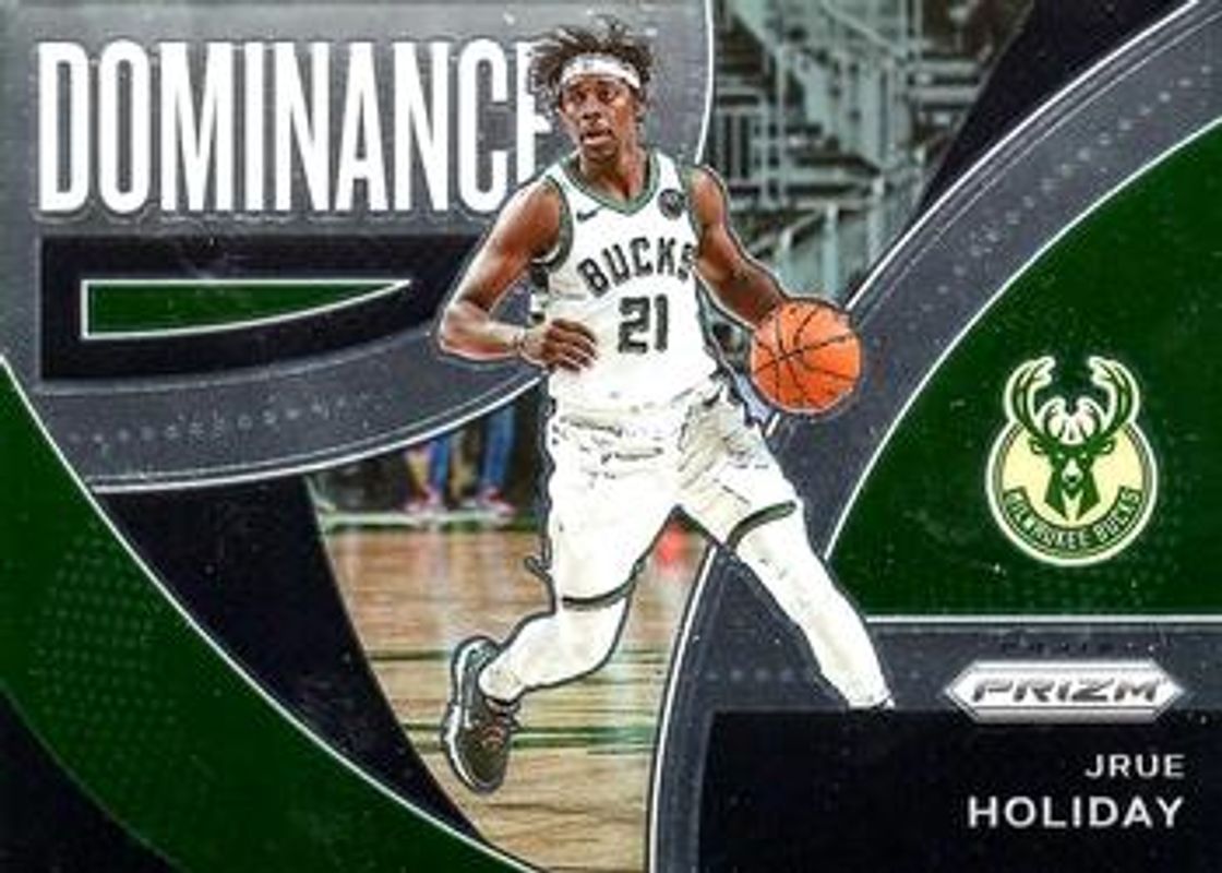 The Jrue Holiday 2021 Prizm #19 Dominance card is 1 of 69 Jrue Holiday's card variations in the 2021 Prizm set being tracked by Sports Card Investor, including Base, Blue NBA 75th Anniversary, Blue Wave, Choice Blue Yellow Green, and Factory Set Blue Hyper.