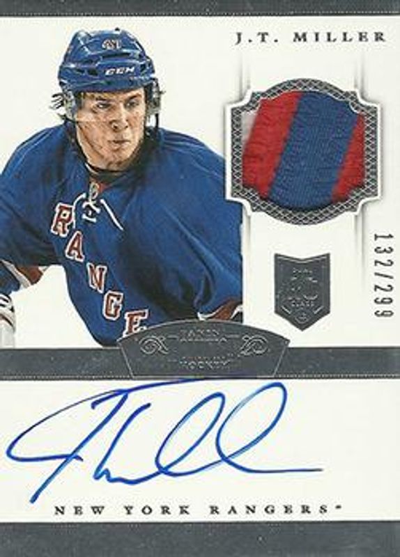 The JT Miller 2013 Dominion #174 Base /299 Rookie card is 1 of 20 JT Miller's card variations in the 2013 Dominion set being tracked by Sports Card Investor, including Gold /50, Emerald /5, Black /1, Authentic Material /99, and Autographs Patches /99.