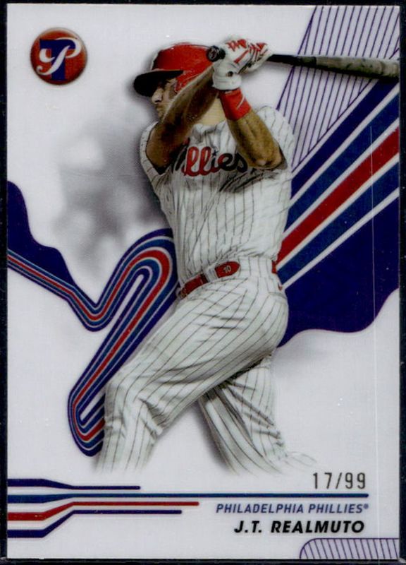The JT Realmuto 2024 Topps Pristine #140 Purple Refractor /99 card is 1 of 24 JT Realmuto's card variations in the 2024 Topps Pristine set being tracked by Sports Card Investor, including Base, Pristine Refractor, Refractor, Green Refractor /150, and Pristine Purple Refractor /99.