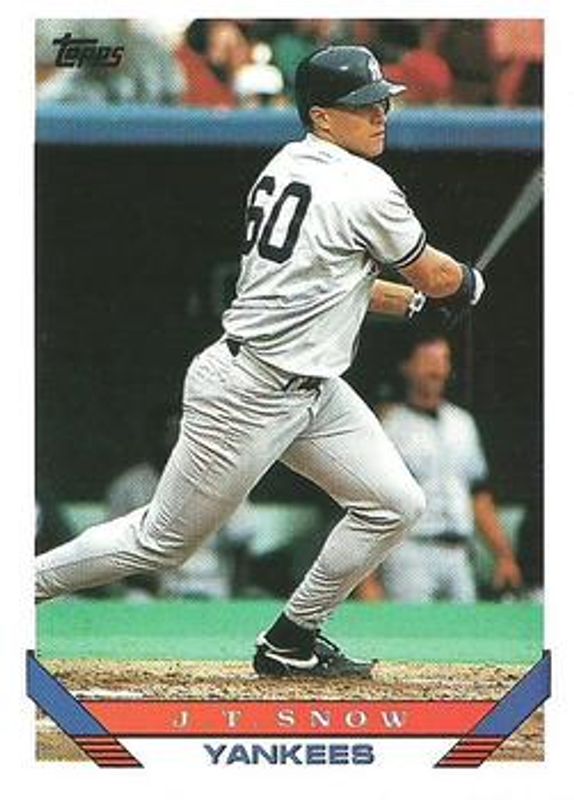 The JT Snow 1993 Topps #422 Base card is 1 of 2 JT Snow's card variations in the 1993 Topps set being tracked by Sports Card Investor, including Gold.