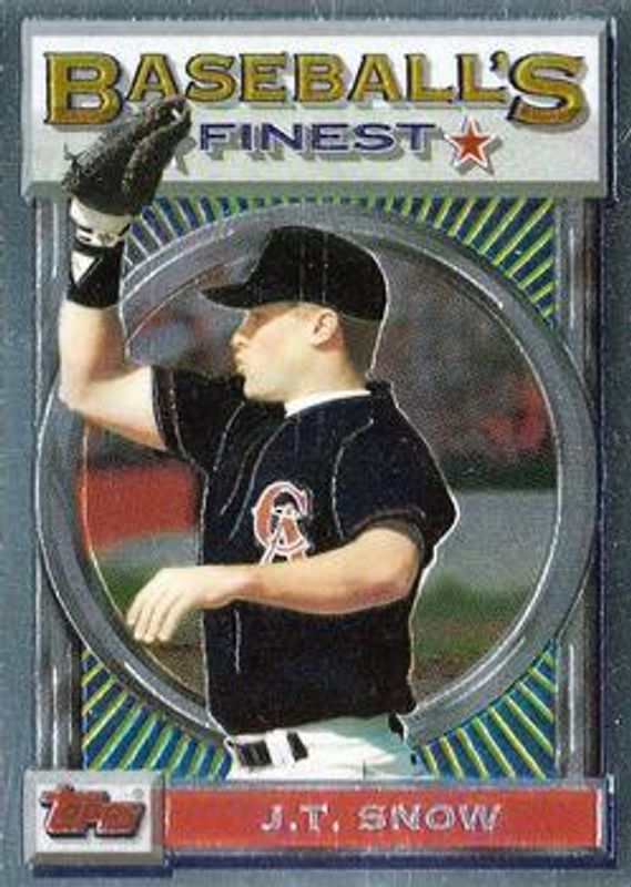 The JT Snow 1993 Topps Finest #156 Base card is 1 of 2 JT Snow's card variations in the 1993 Topps Finest set being tracked by Sports Card Investor, including Refractor.