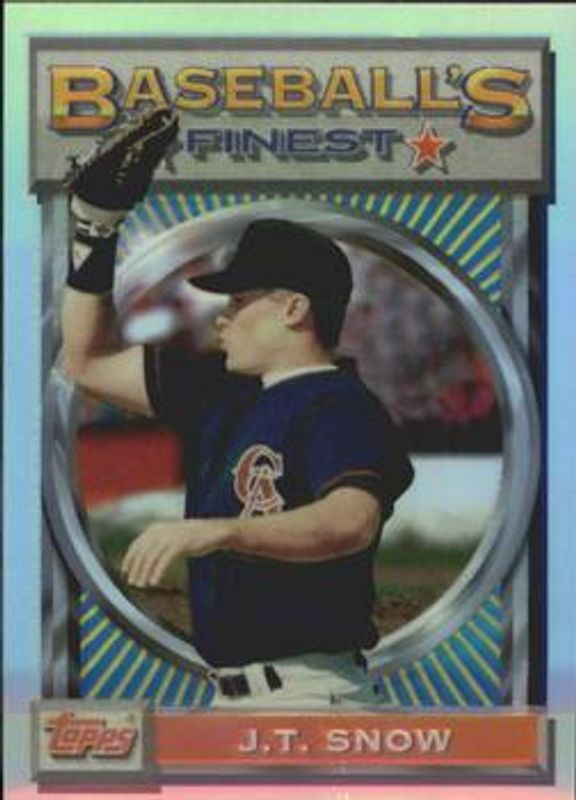 The JT Snow 1993 Topps Finest #156 Refractor card is 1 of 2 JT Snow's card variations in the 1993 Topps Finest set being tracked by Sports Card Investor, including Base.