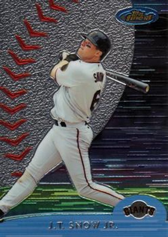 The JT Snow 2000 Topps Finest #173 Base card is 1 of 3 JT Snow's card variations in the 2000 Topps Finest set being tracked by Sports Card Investor, including Gold Refractor /100, and Refractor /1000.