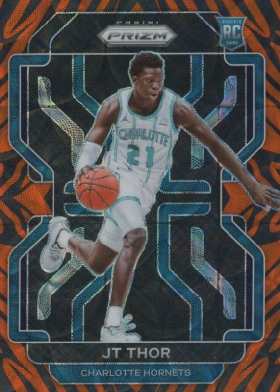 This card is 1 of 70 JT Thor's card variations in the 2021 Prizm set being tracked by Sports Card Investor, including Base, Blue NBA 75th Anniversary, Blue Wave, Choice Blue Yellow Green, and Factory Set Blue Hyper.