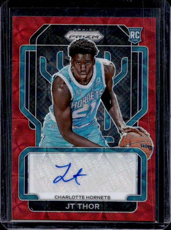 The JT Thor 2021 Prizm #RS-JTT Rookie Signatures - Choice card is 1 of 70 JT Thor's card variations in the 2021 Prizm set being tracked by Sports Card Investor, including Base, Blue NBA 75th Anniversary, Blue Wave, Choice Blue Yellow Green, and Factory Set Blue Hyper.