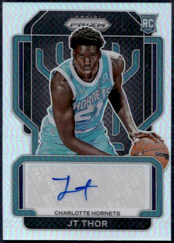The JT Thor 2021 Prizm #RS-JTT Rookie Signatures - Silver card is 1 of 70 JT Thor's card variations in the 2021 Prizm set being tracked by Sports Card Investor, including Base, Blue NBA 75th Anniversary, Blue Wave, Choice Blue Yellow Green, and Factory Set Blue Hyper.