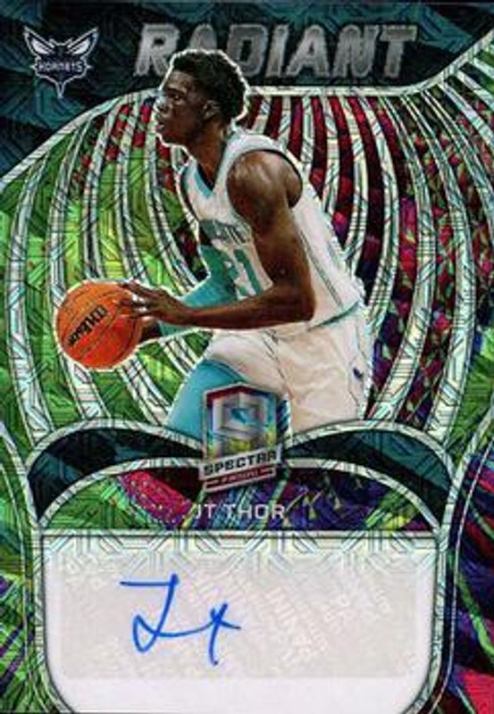 The JT Thor 2021 Spectra #RSI-JTH Radiant Signatures - Meta /25 Rookie card is 1 of 54 JT Thor's card variations in the 2021 Spectra set being tracked by Sports Card Investor, including #216 Base, #134 Base, #134 75th Anniversary, #216 75th Anniversary, and #216 Asia.