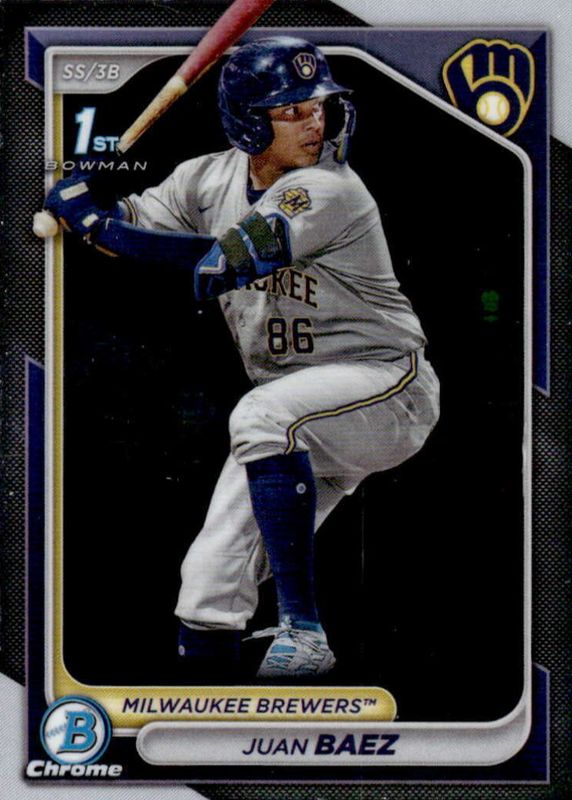 Juan Baez 1st Prospect Rookie 2024 Bowman Chrome Card #BCP-160 Milwaukee Brewers