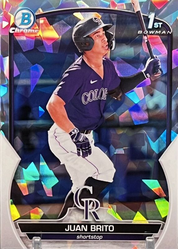 2023 Bowman 1st Chrome JUAN BRITO #BCP-77 Atomic Refractor Cracked Ice Rockies
