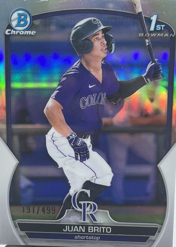 Juan Brito 2023 Bowman Chrome Prospects 1st Refractor 28/499 #BCP77 Rockies