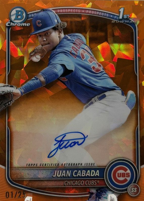 2025 Bowman Chrome Sapphire Juan Cabada Auto Orange Refractor 1st Prospect #/25