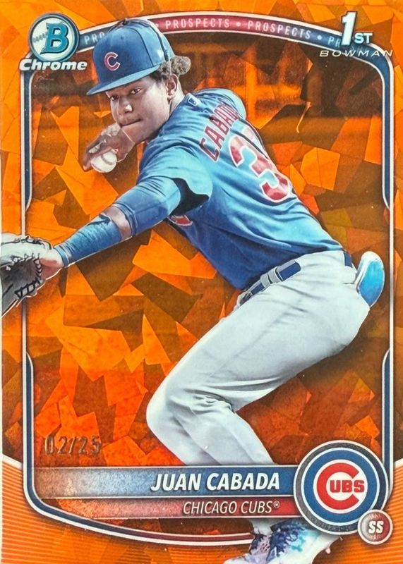 The Juan Cabada 2025 Bowman Chrome Sapphire Edition #BCP-207 Prospects - Orange /25 (1st) card in Raw condition has not changed in price in the last 30 days and was last sold for $49.00 .
