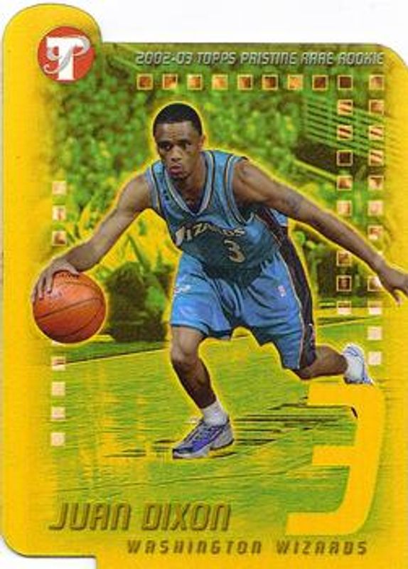 The Juan Dixon 2002 Topps Pristine #101 Gold Refractor /99 Rookie card is 1 of 9 Juan Dixon's card variations in the 2002 Topps Pristine set being tracked by Sports Card Investor, including #100 Base, #101 Base, #99 Base, #99 Gold Refractor /99, and #100 Gold Refractor /99.