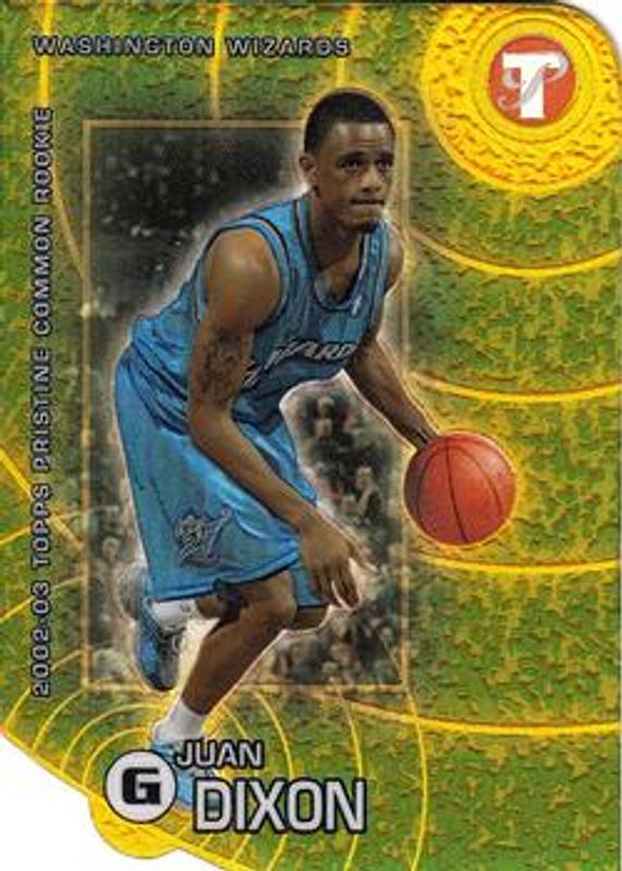 The Juan Dixon 2002 Topps Pristine #99 Gold Refractor /99 Rookie card is 1 of 9 Juan Dixon's card variations in the 2002 Topps Pristine set being tracked by Sports Card Investor, including #100 Base, #101 Base, #99 Base, #100 Gold Refractor /99, and #101 Gold Refractor /99.