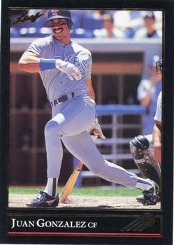 The Juan Gonzalez 1992 Leaf #62 Black & Gold card is 1 of 2 Juan Gonzalez's card variations in the 1992 Leaf set being tracked by Sports Card Investor, including Base.