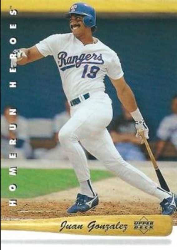 The Juan Gonzalez 1993 Upper Deck #HR1 Home Run Heroes card is 1 of 12 Juan Gonzalez's card variations in the 1993 Upper Deck set being tracked by Sports Card Investor, including #497 Base, #755 Base, #831 Base, #755 Gold Hologram, and #497 Gold Hologram.