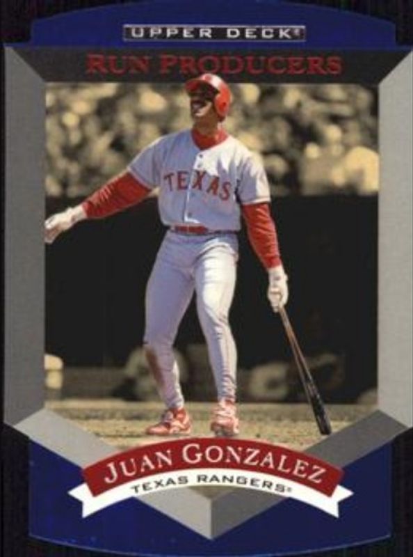 The Juan Gonzalez 1997 Upper Deck #RP6 Run Producers card is 1 of 12 Juan Gonzalez's card variations in the 1997 Upper Deck set being tracked by Sports Card Investor, including #200 Base, #219 Base, #247 Base, #423 Base, and #510 Base.
