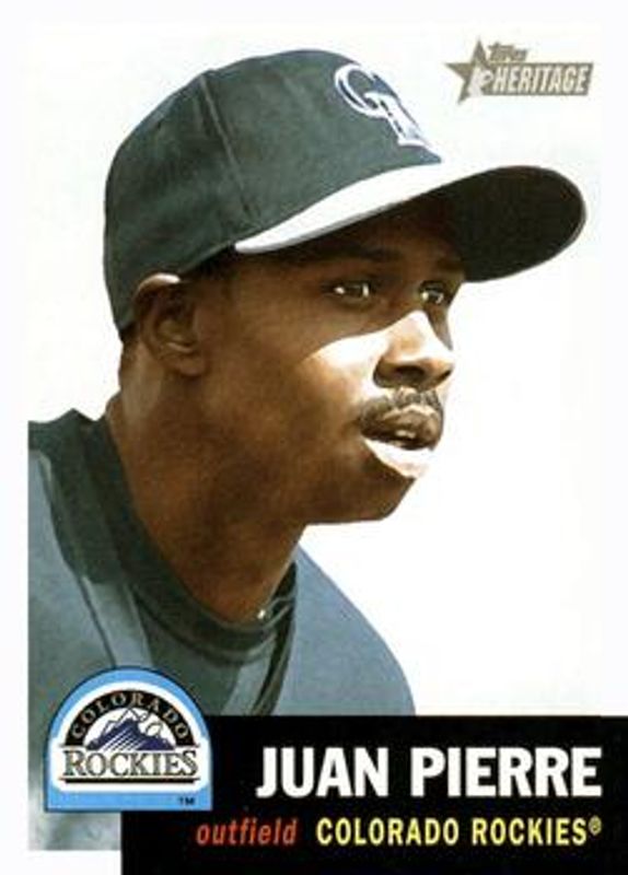 The Juan Pierre 2002 Topps Heritage #175 Base card is 1 of 2 Juan Pierre's card variations in the 2002 Topps Heritage set being tracked by Sports Card Investor, including Chrome /553.