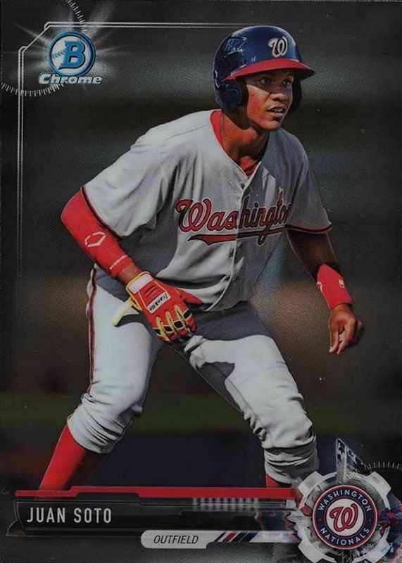The Juan Soto 2017 Bowman Draft #BDC-162 Chrome card in Raw condition has moved down -$2.39 (-61.5%) in the last 30 days and was last sold for $1.49 .