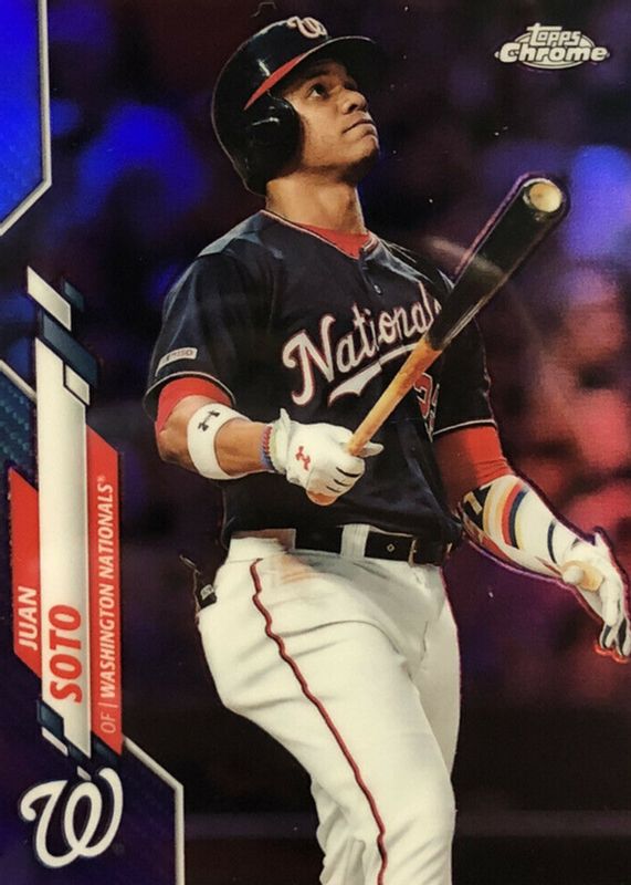 The Juan Soto 2020 Topps Chrome #12 Purple Refractor /299 card in Raw condition has moved down -$0.50 (-7.1%) in the last 30 days and was last sold for $6.50 .