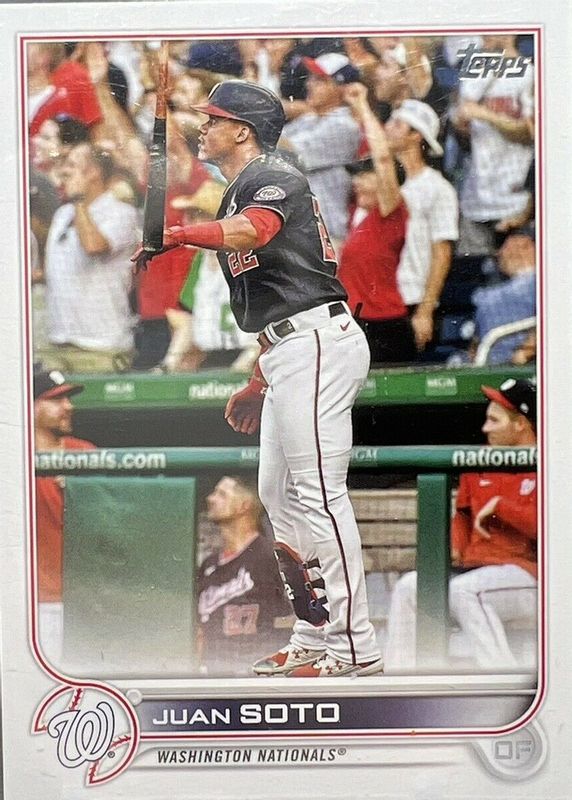 This card is 1 of 21 Juan Soto's card variations in the 2022 Topps set being tracked by Sports Card Investor, including SP Variation, Gold /2022, Green Foil /499, Orange Foil /299, and Red Foil /199.