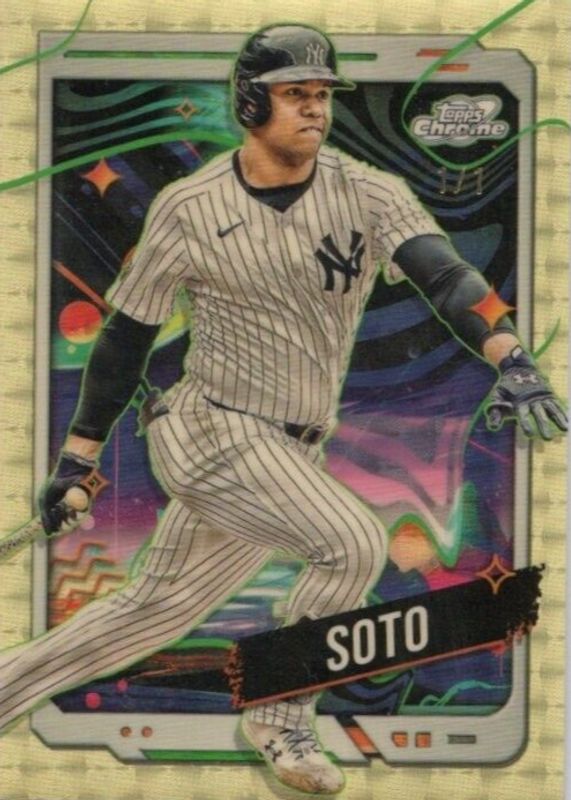 This card is 1 of 23 Juan Soto's card variations in the 2024 Topps Chrome Cosmic set being tracked by Sports Card Investor, including Aqua Equinox Refractor /199, Purple Nebula Refractor /150, Blue Moon Refractor /99, Green Space Dust Refractor /75, and Gold Interstellar Refractor /50.