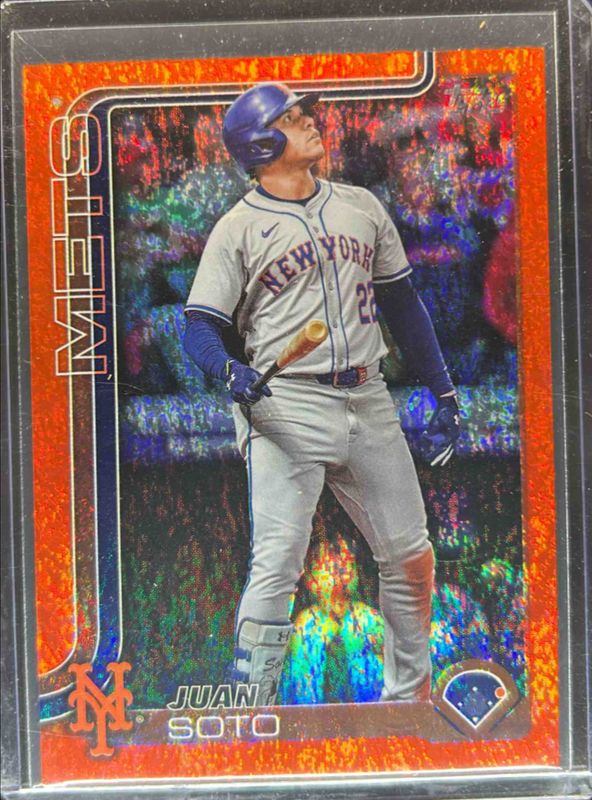 The Juan Soto 2025 Topps #700 Orange Holo Foil /25 card is 1 of 308 Juan Soto's card variations in the 2025 Topps set being tracked by Sports Card Investor, including Base, Aqua Holo Foil, Diamante Foil, Holo Foil, and Pink Diamante Foil.