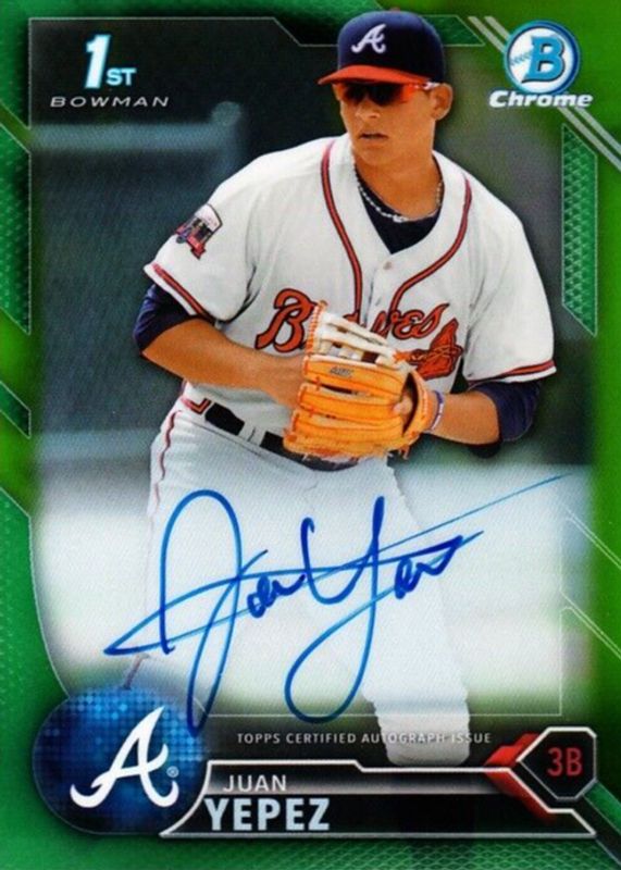 JUAN YEPEZ 2016 Bowman Chrome Green Refractor Auto /99 Cardinals 1st Braves
