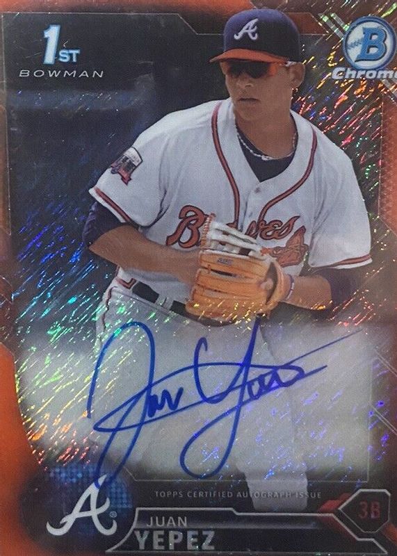 Juan Yepez 2016 Bowman #CPA-JY Chrome Prospect Auto - Red Shimmer Refractor /10 (1st) RAW Price Guide