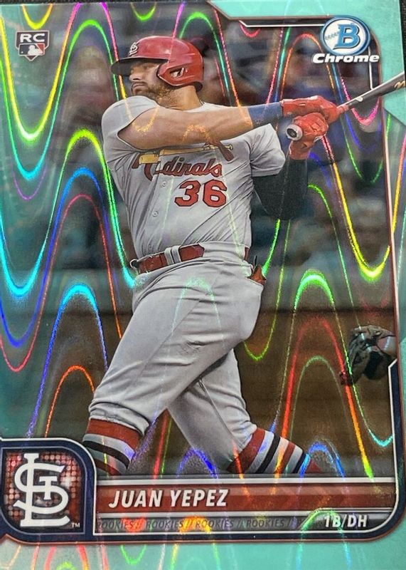 Juan Yepez 2022 Bowman Chrome Aqua RayWave Refractor #/199 RC #26 - Cardinals
