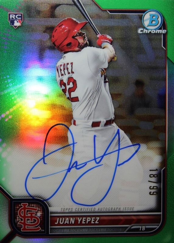 2022 Bowman Chrome Juan Yepez Rookie Auto Green Refractor /99 CRA-JY Cardinals