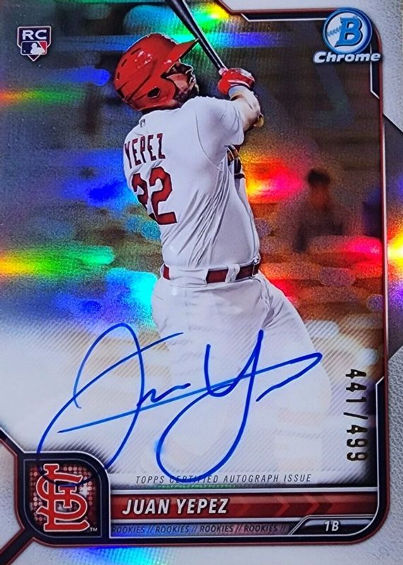 2022 Bowman Chrome Rookie Auto Juan Yepez #CRA-JY Refractor /499 (AU, RC)