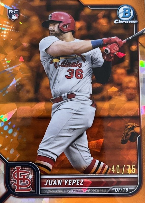 2022 Bowman Chrome Sapphire Juan Yepez Orange Refractor Rookie RC #/75 26
