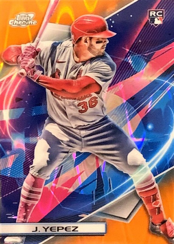 The Juan Yepez 2022 Topps Chrome Cosmic #36 Orange Galactic Refractor /25 Rookie card in Raw condition has not changed in price in the last 30 days and was last sold for $35.00 .