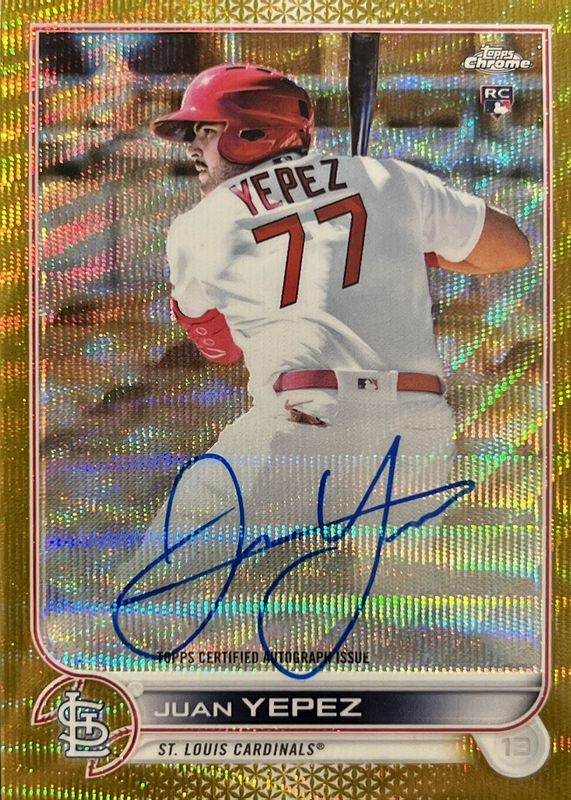 2022 Topps Chrome Juan Yepez Gold Wave Refractor 48/50 Auto Rookie Card RC