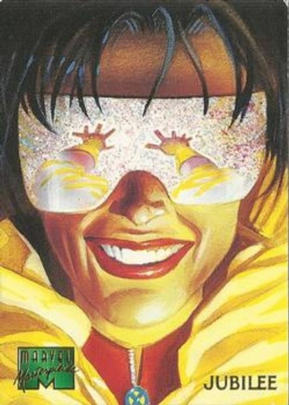 The Jubilee 1995 Fleer Marvel Masterpieces #58 Base card is 1 of 7 Jubilee's card variations in the 1995 Fleer Marvel Masterpieces set being tracked by Sports Card Investor, including #59 Base, #60 Base, #58 E Motion Signatures Series, #59 E Motion Signatures Series, and #60 E Motion Signatures Series.