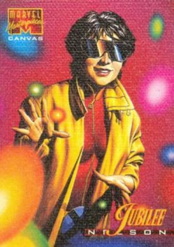 The Jubilee 1995 Fleer Marvel Masterpieces #12 Canvas card is 1 of 7 Jubilee's card variations in the 1995 Fleer Marvel Masterpieces set being tracked by Sports Card Investor, including #58 Base, #59 Base, #60 Base, #58 E Motion Signatures Series, and #59 E Motion Signatures Series.
