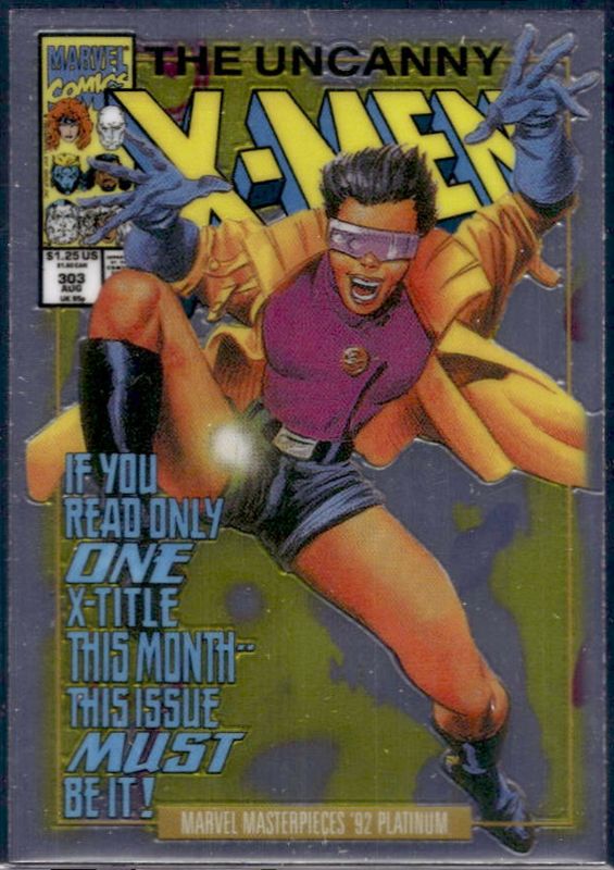 The Jubilee 2024 Upper Deck Marvel Masterpieces '92 Platinum #100-V Variant Cover card is 1 of 38 Jubilee's card variations in the 2024 Upper Deck Marvel Masterpieces '92 Platinum set being tracked by Sports Card Investor, including Base, Blue Traxx, Canvas, Clear Cut, and Emerald Surge.