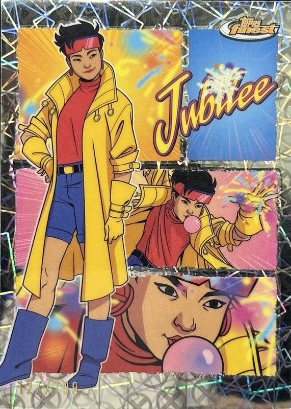 This card is 1 of 33 Jubilee's card variations in the 2025 Topps Finest X-Men 97 set being tracked by Sports Card Investor, including Common, Common - Refractor, Uncommon, Common - Protector Refractor, and Uncommon - Protector Refractor.