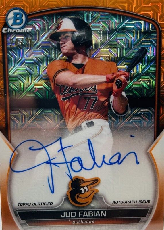 Jud Fabian 2023 Bowman Mega Box #BMA-JF Chrome Prospect Auto - Orange Mojo Refractor /25 RAW Price Guide