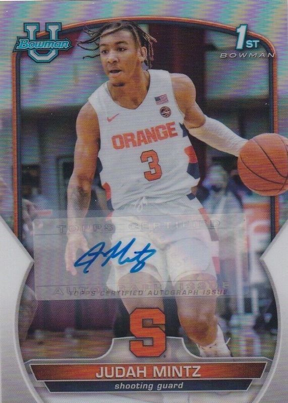 Judah Mintz 2022-23 Bowman Chrome U #33 Refractor Auto /499 1st RC Syracuse