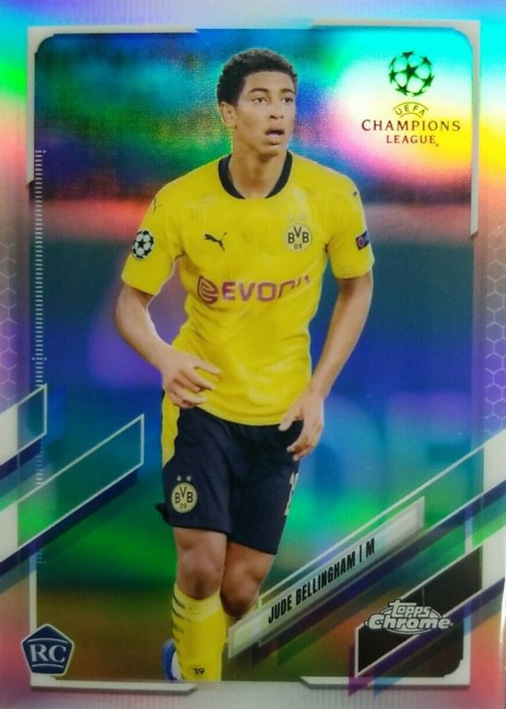 Jude Bellingham's Soccer cards are available in at least 126 sets. Jude Bellingham's biggest 7-day price movers are 2022 Prizm World Cup #90 Red /399, 2023 Obsidian #13 Black Color Blast /(SSP), and 2020 Topps Merlin Chrome UEFA Champions League #31 Green Refractor /99.
