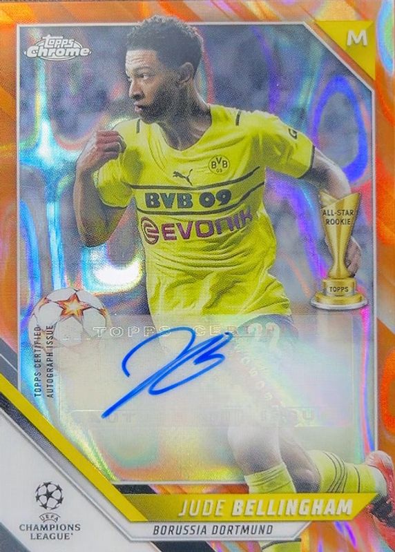 Jude Bellingham 2021 Topps Chrome UEFA Champions League #CA-JB Autographs - Orange Lava Refractor RAW Price Guide
