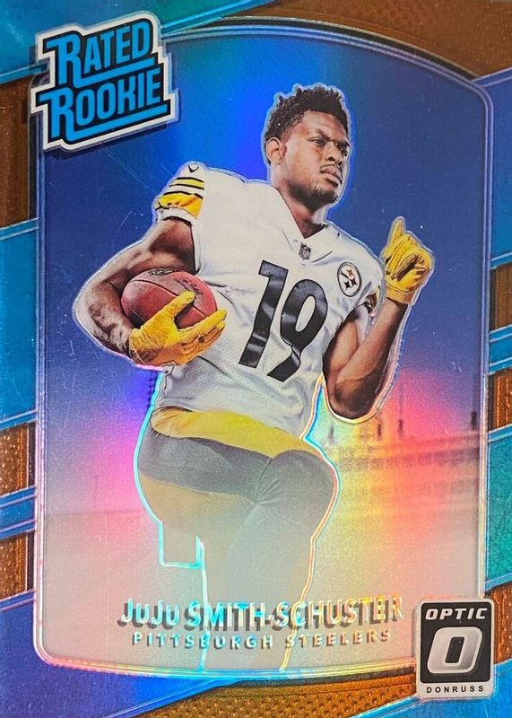 The JuJu Smith-Schuster 2017 Optic #176 Bronze Rookie card in Raw condition has not changed in price in the last 30 days and was last sold for $1.32 .