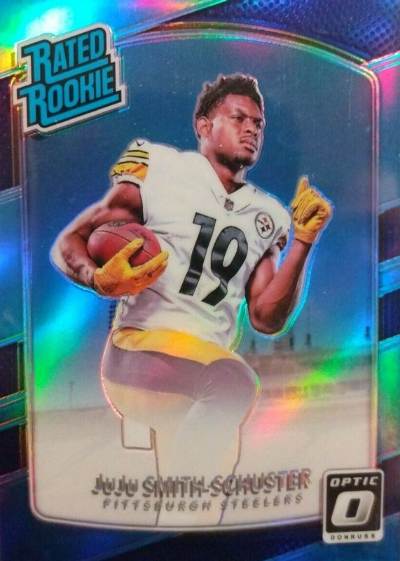 The JuJu Smith-Schuster 2017 Optic #176 Purple /50 Rookie card in Raw condition has not changed in price in the last 30 days and was last sold for $3.25 .