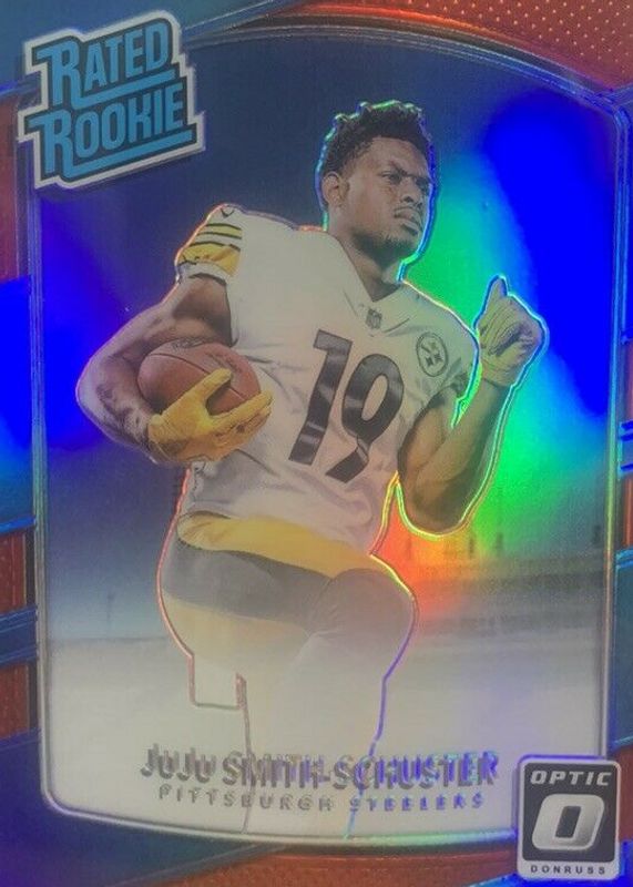 The JuJu Smith-Schuster 2017 Optic #176 Red /99 Rookie card in Raw condition has not changed in price in the last 30 days and was last sold for $12.50 .