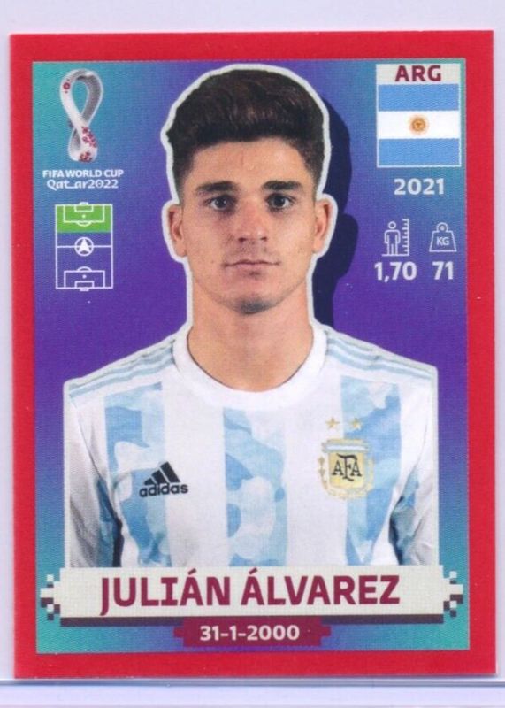 2022 Panini World Cup Sticker Argentina RC Julian Alvarez Red