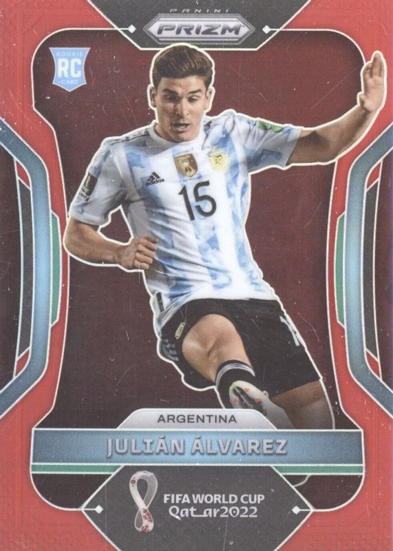 2022 Panini Prizm FIFA World Cup Julian Alvarez, Argentina RC Rookie Red 157/399