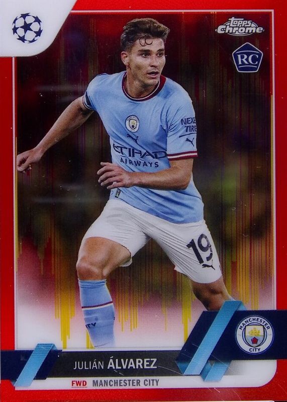 Julian Alvarez 2022 Topps Chrome UEFA Club Competitions #68 Red & Gold Seismic Refractor Rookie RAW Price Guide