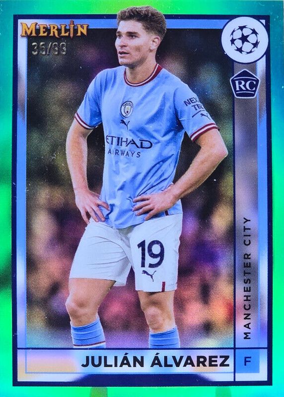 2022-23 Topps Merlin Chrome Julian Alvarez Green Refractor 35/99 Rookie Man City